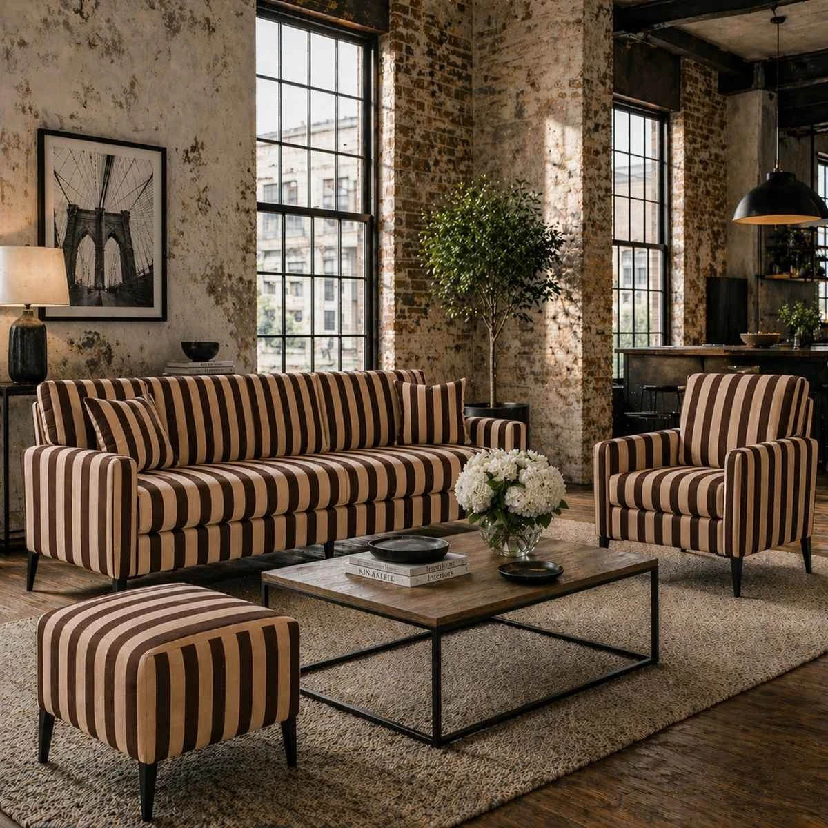 Materiał w pasy, który podkreśla charakter mebla